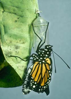 “Inside the Chrysalis”, by Dr. Lincoln Brower, offers a very nice explanation (complete with audio) of the transformation process.